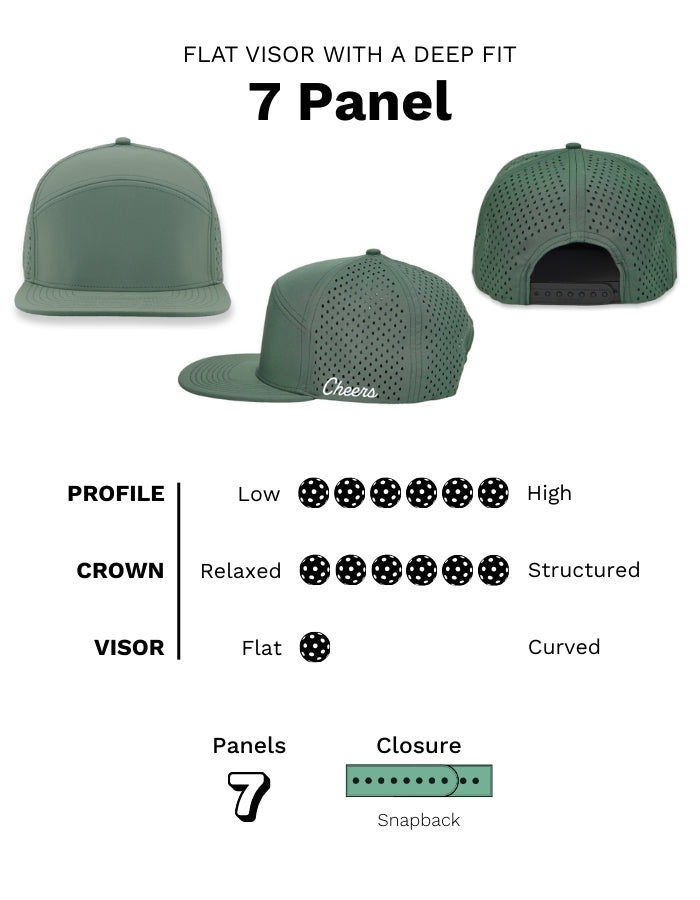 With a striking 7-panel silhouette, flat brim, and contoured crown, this hat delivers structure, style, and a modern edge. Moisture-wicking details keep things cool and comfortable, even when the day heats up.
