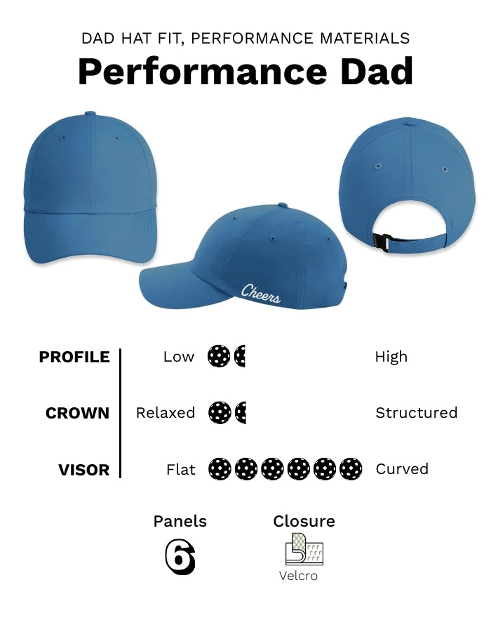 Embrace life on the move with our Performance Dad hat—designed for all the ways you play, explore, and unwind. Built with performance-minded features like moisture-wicking fabric, UPF 50+ sun protection, and a lightweight feel, this hat keeps up whether you’re deep in a rally or just out running errands.